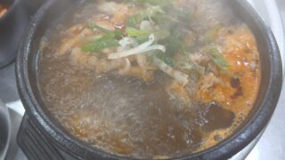 クラムチャウダーだった。コクがありパンと一緒に食べると何杯でもいけそう。干した野菜を煮込んだ韓国風の味噌汁だ。カレーは肉と野菜がこれでもか!とゴロゴロ入っている。まるで家庭料理みたい。日本の味が恋しくなるような日本風カレーの味だった。