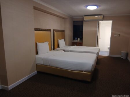 新築当時は相当、格式の高いホテルだったのでは。現在、老朽化は否めないものの、一晩だけトランジットのような感覚で宿泊するなら許容範囲か。とにかくラムカムヘーン駅まで近いし、駅の1階には食堂やフルーツの屋台などがたくさん出ている。