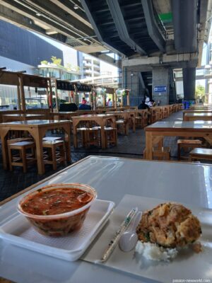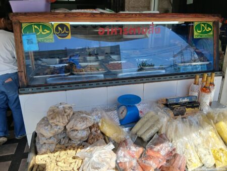 惣菜店にはおいしそうなタイ料理が売られているが、テーブルや椅子はなく多くはテイクアウト用。