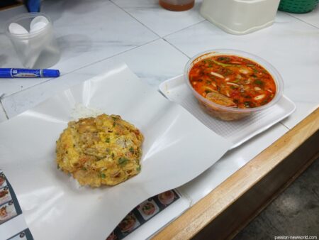 おー、これは安い。ひき肉ポークのオムレツライス(54番)が40バーツ。
