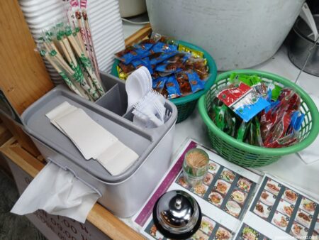 朝っぱらトムヤムクンというのはいかがなものか、と何故か一瞬迷ったが、両方注文して先払い。料理ができたら呼び鈴で知らせる仕組みだ。
