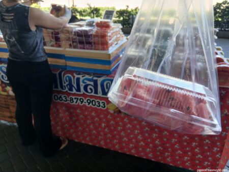 トムヤムクンの一気呑みで流石に舌が痺れたので、スイカを買ってホテルへ帰ることに。