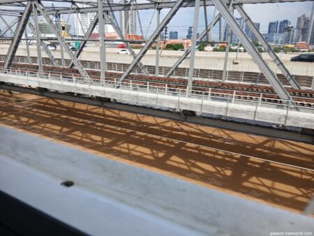 チャオプラヤ川の鉄橋を通過。