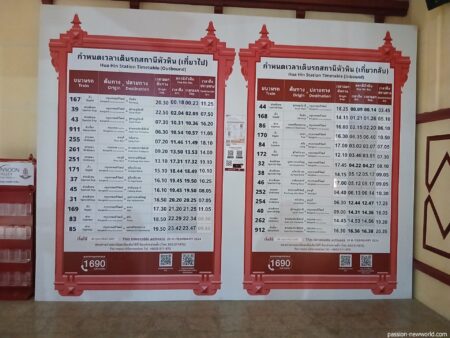 ついでにホアヒン駅発の時刻表を載せておく。