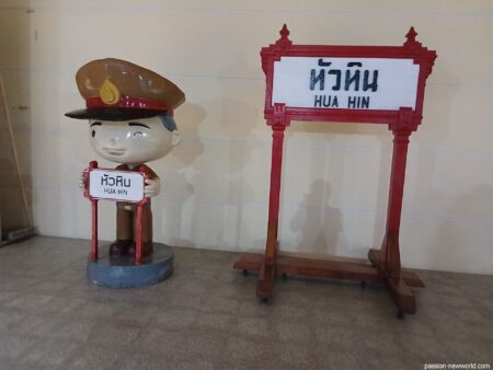 ホアヒンは約20年ぶりくらいだ。駅舎がバカでかく改修されていてビックリした。1階中央付近にあるホアヒン君。