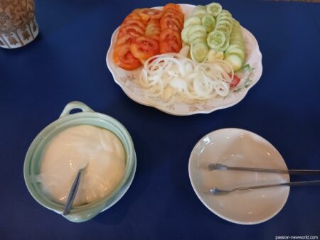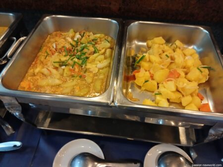 ポテトのゴロゴロ煮とあんかけ風卵とじ。こういうタイ料理は初めてかも。かすかにカレー味がするポテトがパンとよく合う。