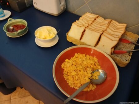 パンはトースターで焼くことができる。バターとジャム。そしてシリアル。
