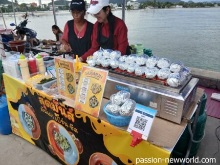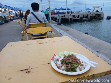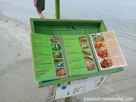 ジェットスキーなどけたたましい騒音が出るアトラクションは禁止されているためか、ひなびた雰囲気に誘われてリピートしてしまう観光客も多いだろう。ただし、ビーチ沿いの食堂はかなり高い。この店はトムヤムクンが300バーツ(1300円)もする。