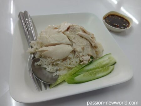 カオマンガイは鶏肉にしっかり味がついていてしかも身がほろほろとほぐれ極上の味わい。ご飯にも鶏肉の旨さがしみ込んでおり味に深みがある。