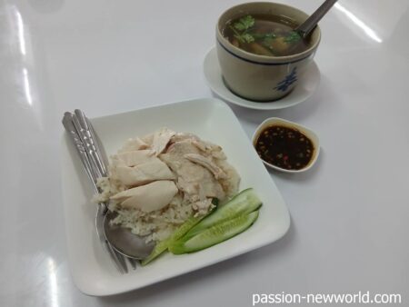 支払いはカオマンガイ45バーツ、スープ45バーツで計90バーツ(約400円)とお得な価格。