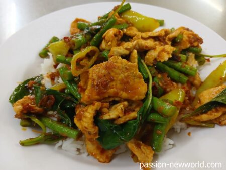 豚肉/チキンのカレーペースト強火炒め。うーむ、食欲が沸いてくる。