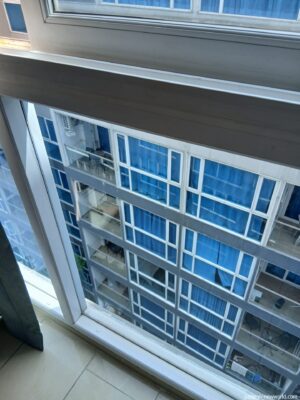部屋は8階。眺望は…すぐ隣の壁だったので夜中はカーテンを閉めきったほうが無難だ。