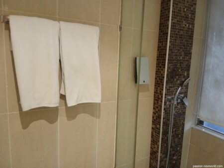 シャワー室のタオルは新しくてシミひとつない。