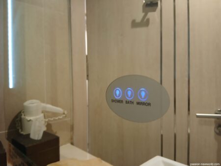 鏡の表面上に点灯のスイッチがあり、ハイテクぶりに少しビックリ。