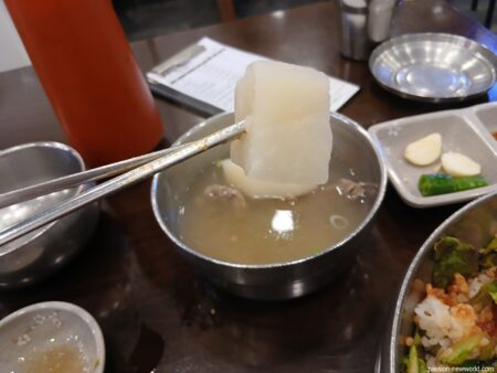 スープの中には牛肉の塊とおおぶりな大根。他店は牛肉のみだったような。