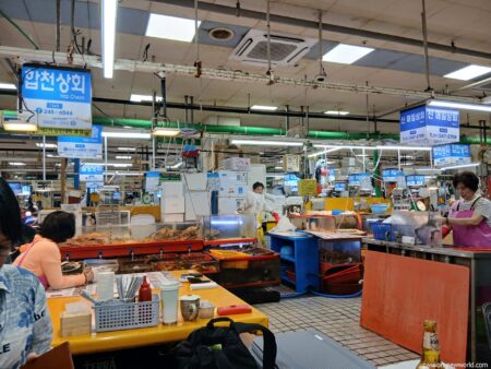それにしてもチャガルチで食べるセコシは格別に旨い。実際にどんな魚を使ったのか聞き忘れたが、マナガツオを使うケースもある。10年ほど前に来た時は、水槽内に残った小魚を5~6尾ほどかき集め、片っ端からセコシにしていたような。お値段は確か1万ウォン。当時と比べ物価高が凄まじい。チャガルチ市場のローカルな雰囲気は旅情を誘うが、はやりお値段をよく調べてから注文した方がよさそうだ。