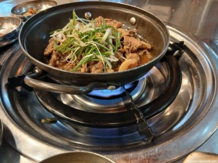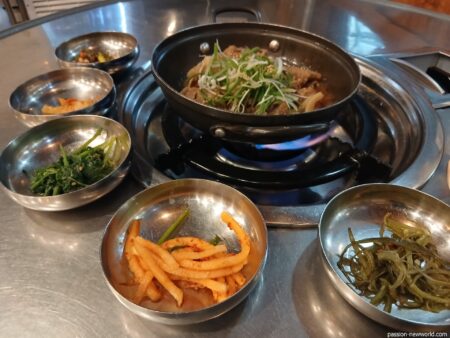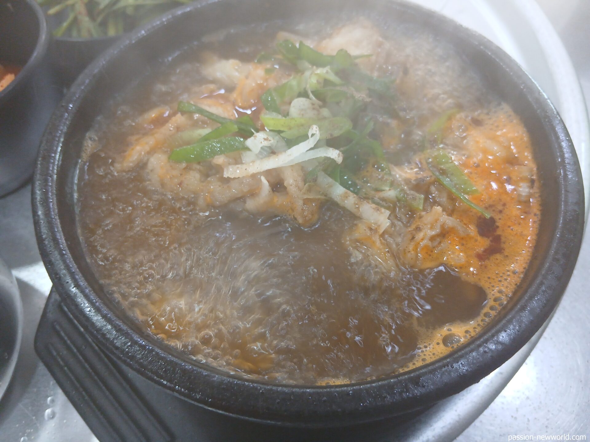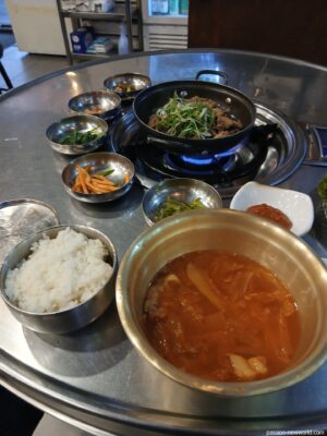 肉に適度の脂身があり、甘味を感じる。熱々を口に運んでフーフー言いながら食べるのが楽しい。キムチチゲも付いているので交互に食べると旨さ倍増だ。この辺りに出かけた際は有力候補になりそうな超コスパ店だろう。