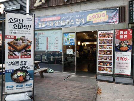 釜山の高級エリアであるセンタムは、新世界デパートとロッテデパートが隣同士で立っている超お洒落スポット。飲食店はどこも割高かと思いきや、探せば格安のスポットもある。今回は、ランチのコスパが最高だったこちらのお店「ハスクチプ」を紹介。