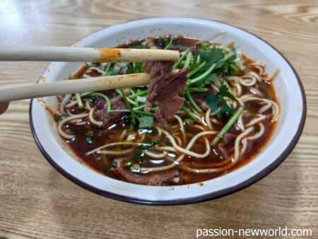 翌朝はホテル近くの桂園路を散策。途中で「牛肉麺」のお店を見つけ入店してみた。