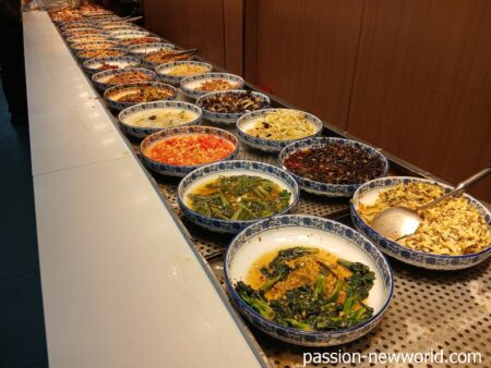 他にもこのようにズラリと並んだおかず類を2つ、3つ選んでご飯の上にかける中華式ぶっかけ飯のお店もたくさんある。お値段はおかず2品にご飯でだいたい350円から400円ほど、スープ類はサービスで飲めた。