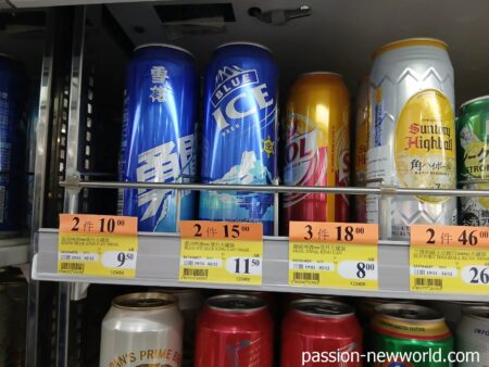セブンイレブンに入るとビールは驚きに安値だ。アサヒのスーパードライは1缶18香港ドル(360円)だが、3缶買うと36香港ドルで、1缶12香港ドル(240円)。日本とさほど変わらなくなる。