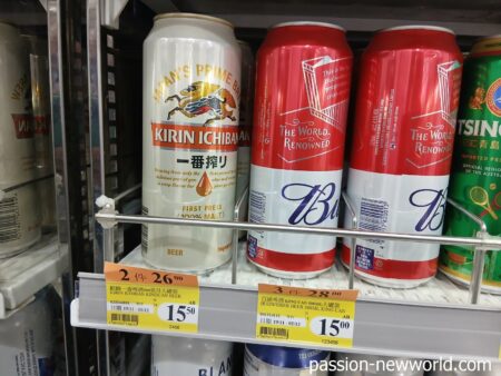 こちらはキリン一番搾り。2缶買うと26香港ドル(520円)にディスカウント。