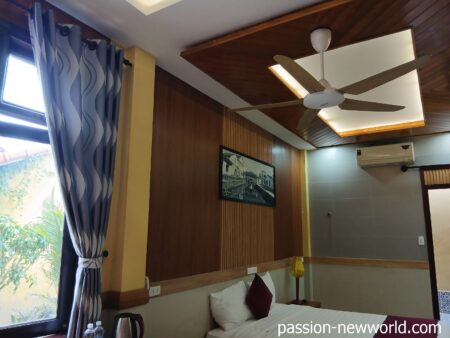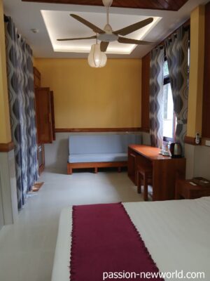 トゥボン川近辺でホテルを探していたところ、agodaで発見した南国ムードたっぷりのホテル。2100ほどと安価だったのでさっそく予約。当初、1泊で予約したのだが、部屋があまりに素敵なので計3泊に延長したほど。