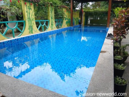 ホイアンの小規模ホテルには池のような小さなプールがある場合が多いが、こちらのホテルのプールは広めでらくらく泳げる。ただし、水温が低くて10分ほどで退場。