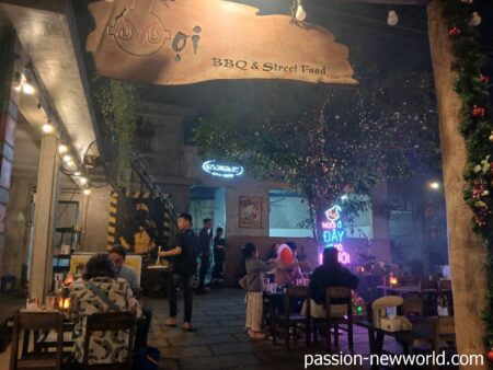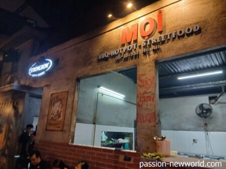 ホイアンで偶然見つけたビアホイのお店がこちら。すぐ近くにホテルをとっていたためすぐに気が付いた。「Moi BBQ&Syreet Food」。店内、というか屋根がないので広場みたいなところでお客さんがBBQを焼いており、立ち上る煙があたりに充満している。とはいえ、基本屋外なので空へと消えていくのだが。この雰囲気がたまらなく開放的だ。