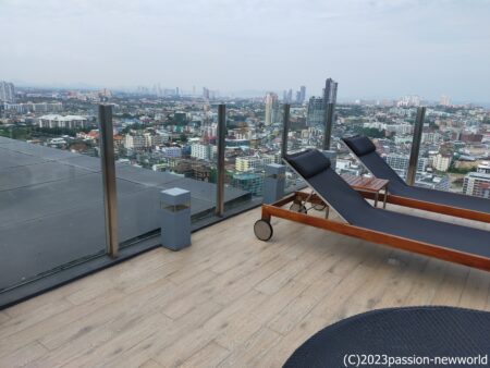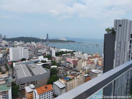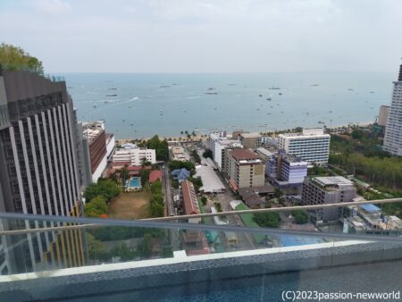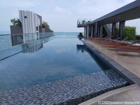 このコンドミニアムは各部屋ごとにオーナーが異なるため、agodaで予約したにしてもその後、各部屋のオーナーに連絡してチェックイン時のルームキーの受け取り方法を決めておく必要がある。旅行サイトの口コミを読むと、この鍵の受け取りについてトラブルが多い。多いのはオーナーにメールしても返事が来ない、返事が来ても受け取り場所と時間がはっきりしない、など。これが面倒で敬遠する旅行客もいるが、それでもこのコンドミニアムが魅力的なのは屋上プールからの眺め。パタヤビーチを見下ろせる眺望が素晴らしく絶景といえる。こんな高級気分が味わえるプールはなかなかないだろう。