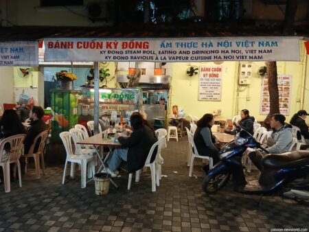 ハノイに到着後、財布を見たらベトナムドン紙幣があまりない。両替はターヒエン通り近くに点在する貴金属商でも両替できるが、実際にはハーチュン通りの方がレートは有利だった。ターヒエン通りから西に向かって進みくねった道路を左側に回り込んだあたりがハーチュン通り。今回はこちらの「THINH QUANG」を利用した。この店の左並びの店は1万円で164万ドンを提示。周囲の店も調べるとだいたい高くても164万5000ドン。