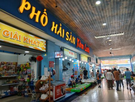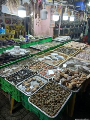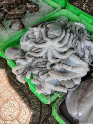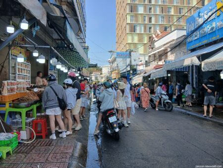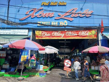 ホーチミンのタンソンニャット国際空港から直行バスでブンタウに到着。初日の夜はブンタウ随一のシーフード繁華街・フォードゥックチン(Pho Duc Chinh)通りを散策。土曜夜とあって大変な賑わいだ。通りの入り口すぐ左手にあるCO HANHが気になり食材を観察。