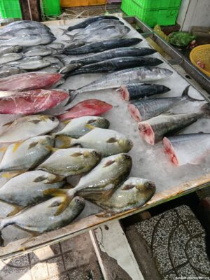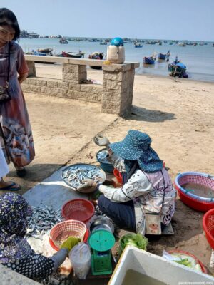 沖にたくさんの船が浮かんでいる。どうやら漁船のようだ。獲れた魚をビーチですぐに販売している。小さなイワシの稚魚や大きなタイも。