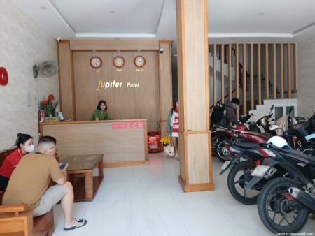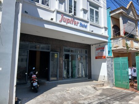 ブンタウはホーチミン市民の憩いのビーチとあって週末となると大変な賑わいを見せる。ビーチ周辺のホテルやコンドミニアムは値段が高くなり、筆者が滞在していたザ ソング アパートメント ブンタウも平日価格の2倍から3倍に跳ね上がる。そこで緊急避難先として週末でも値上がりしないホテルを探してみた。発見したのがコンドから徒歩3分のジュピターホテル。