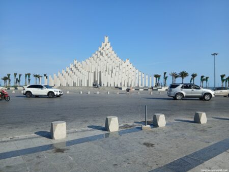 バックビーチの新観光名所がタムタン・タワー。無数の柱が空に向かって伸びている。高さ4.55mから34.25mまでの143本の鉄筋コンクリート柱でできており、優雅で力強いデザインが印象を残す。