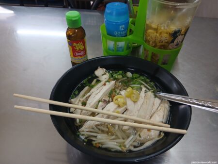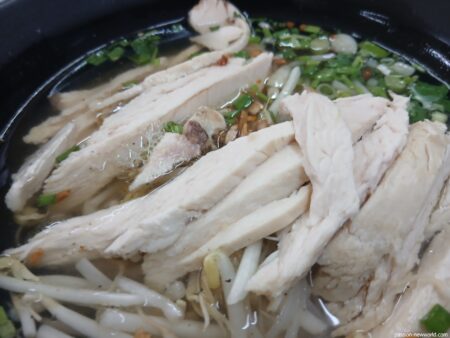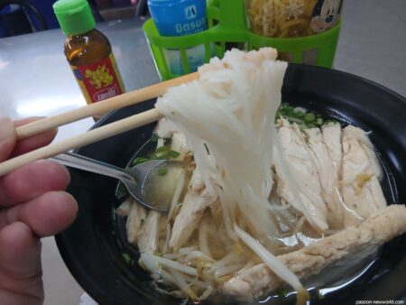 こちらの鶏そばはセン・レックのようだ。もちもちとした食感が楽しめる。