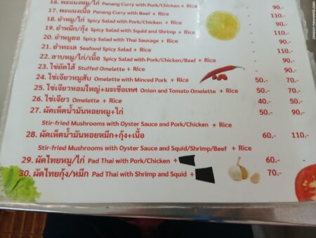 パタヤ到着後、真っ先に向かったのがいつもの名無し食堂。心なしか以前より客が増えているような気がする。商売繁盛、いいじゃないか。安くて旨いので初日から5日目まで毎日通ってしまった。