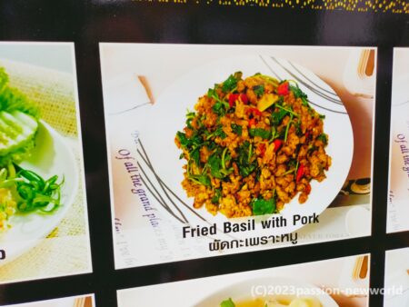 こちらの料理名をよく見ると「炒めたバジルの豚肉添え」といった意味になる。主役は豚肉ではなくタイバジルなのだ。そのまま生でも、炒めても美味しいうえ、健康にも良いタイバジル。タイ料理の奥行きの広さを実感する。
