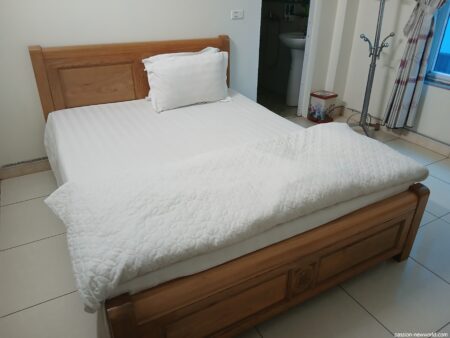 ベッドのシーツは真っ白。掛け布団が薄くて、夜はフリースを着たまま寝た。