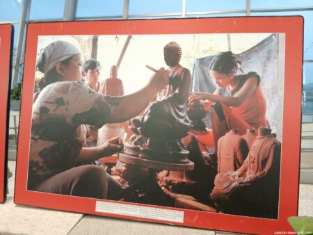 入国審査を終えて搭乗ゲートへ向かうと、ベトナムの伝統文化を紹介するパネル展が行われていた。これは興味深い。すっかり見入ってしまった。しかも、建物内は暖房が効いていて暖かく心地がよい。