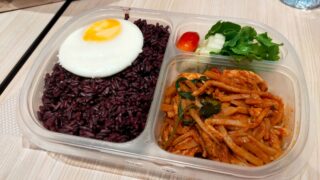 安くて美味しいセンタン地下フードコートのお弁当 栄養満点の黒米ライスベリーには抗酸化作用 260円