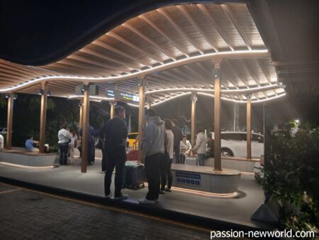 深夜到着で疲れがたまっているだろうから、という理由で今回は空港から徒歩圏内のホテルを手配した。2500円だったが、Trip.comのクーポンで1000円引きの1500円。道路を渡ってこのGrabの待機所も抜けて敷地外へ出ようとしたが、ぐるぐる迷ってしまい、結局、いったん戻って空港国内線から外へ出ることに。