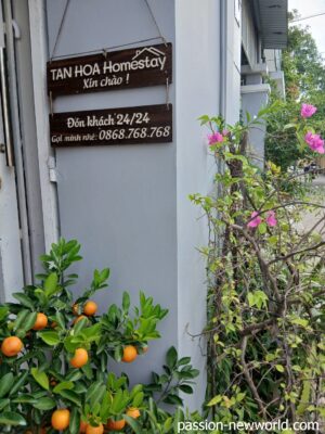 宿泊先はTan Hoà Homestay Da Nang Airport(撮影は翌朝)。Trip.comで深夜到着する旨をメッセージで送っておいたのだが、鍵がしまっていたらどうしよう…と不安だった。到着するとエントランスには明かりがともり若い部分金髪のあんちゃんがにこやかな笑顔で出迎えてくれた。宿泊予定者の一覧をスマホで見せてもらった。私のほかにも深夜到着のお客さんが数人いるみたいだ。