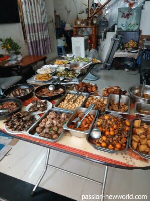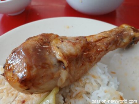 ライスに鶏もも、炒め野菜を頼んで値段を聞いたら「2万ドン」。マジか?安すぎるやろ。そこで、豚肉脂の揚げ物を追加すると、4万ドンに跳ね上がった(;’∀’)。まあ、いいや。