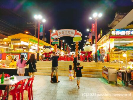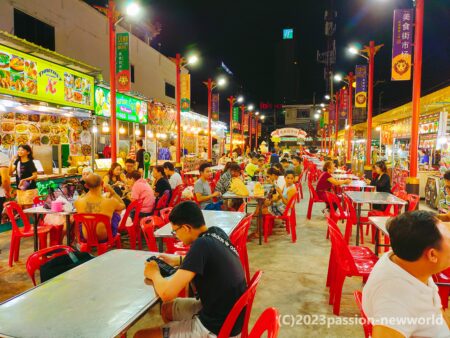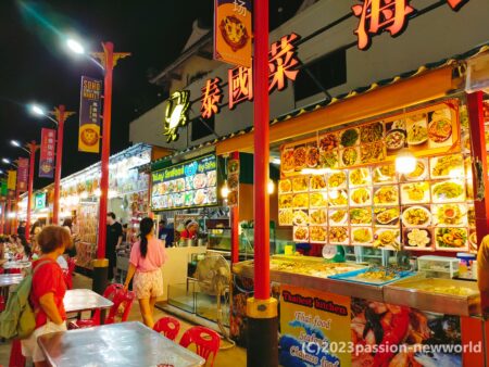 ビーチロード北端のターミナル21の手前に広がるチャイナタウン。中華料理店や食材店が集まる中、美食街市場には大勢の客が集まり活気に包まれていた。