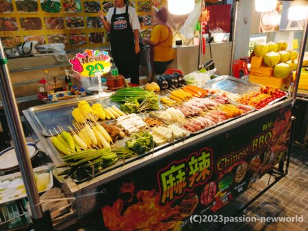 野菜や肉類の串揚げは1本20バーツと安い。これをおつまみにしてビールを飲むのも良い。