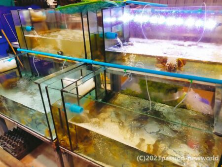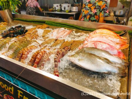 人気なのが海鮮料理店。生け簀の中には魚やエビが泳いでいる。
