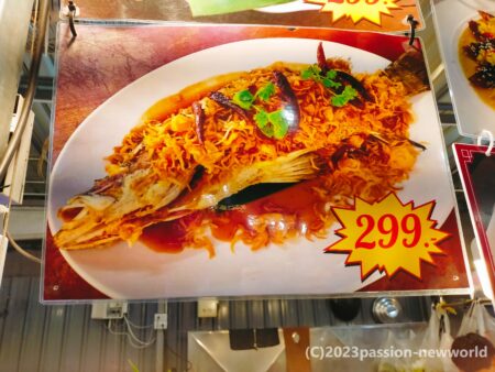 これは魚のディープフライ。味付けもリクエストすれば辛さ、甘さ、ニンニクなども好みに仕上げてくれる。299バーツ(約1200円)は少し躊躇するが、日本で食べるよりはるかに安価だ。