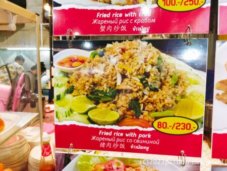 豚肉のチャーハンは80バーツ(360円)。ライム付き。