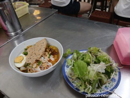 その床屋さんのすぐ近くの路地でミークゥアンの店を発見。貝料理だけではお腹がいっぱいにならないので、麺を1杯食べていくか。